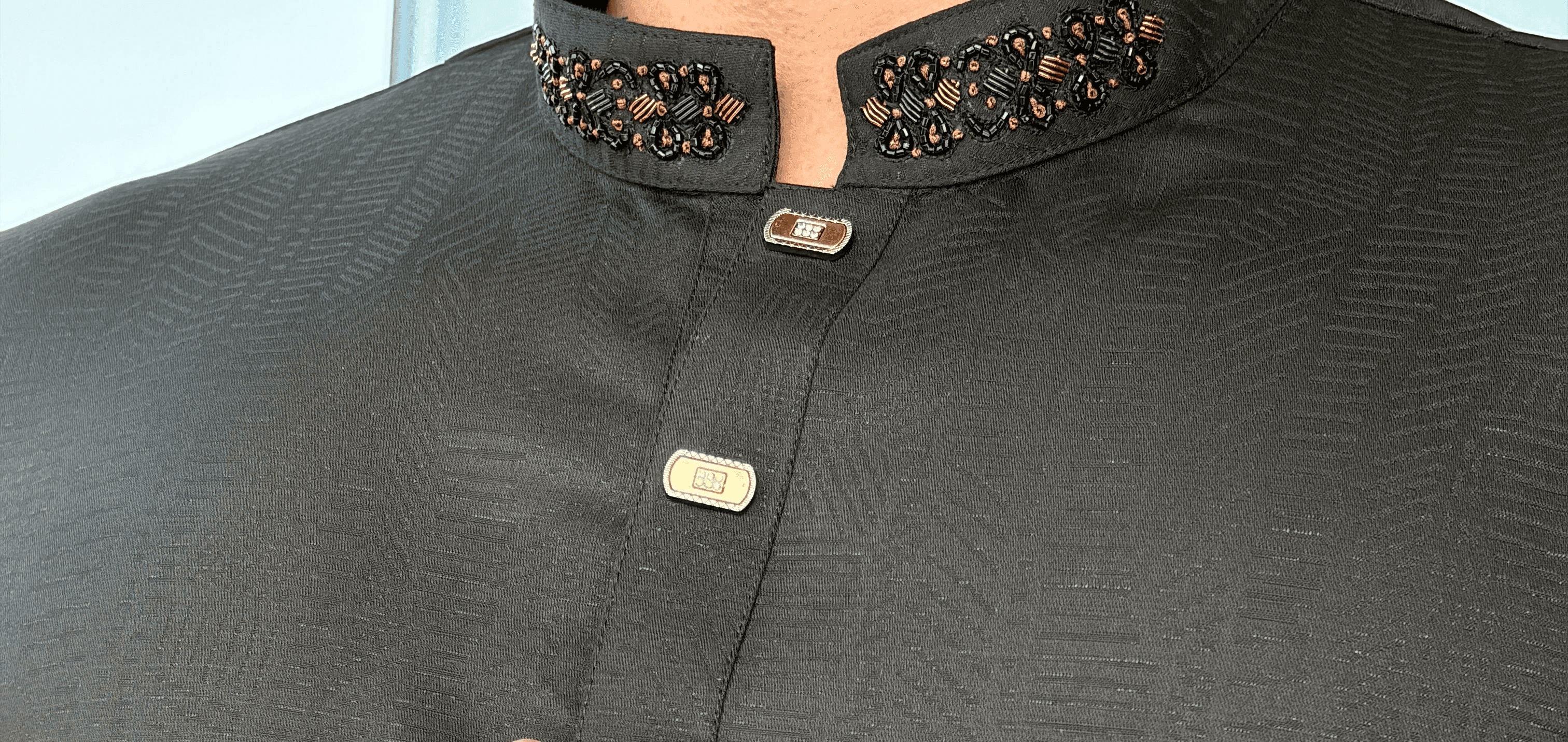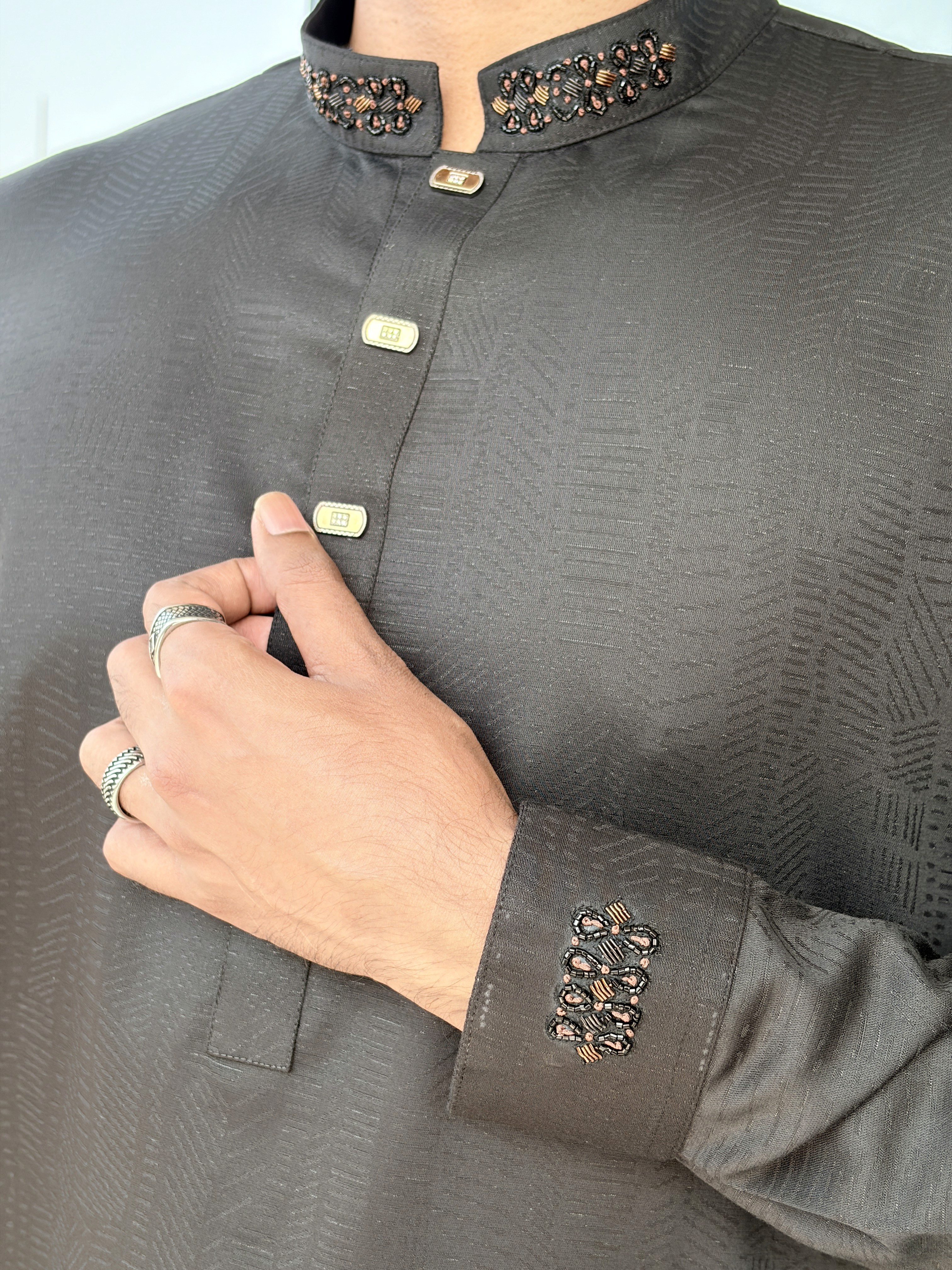Black Signature Textured Panjabi